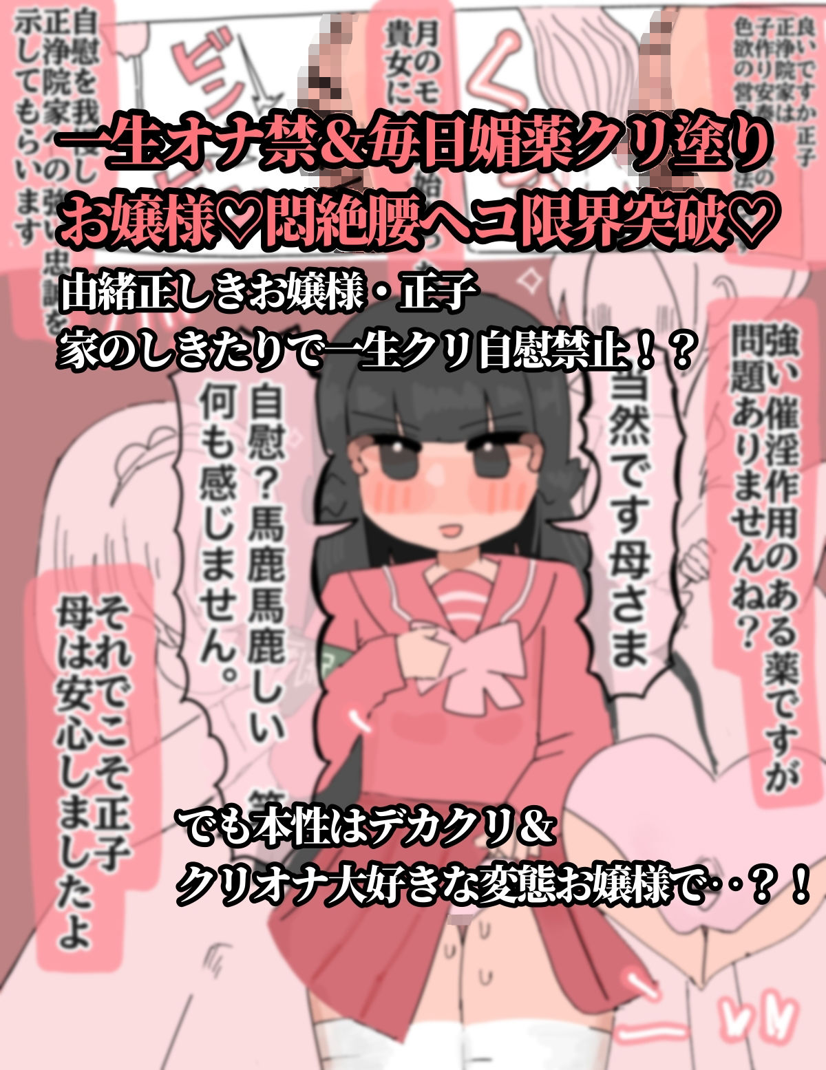 サークル「えちしゃけ」がおくる最新漫画「生涯オナニー禁止〜媚薬で強●クリ発情 清楚委員長クリイキ懇願〜」の無料サンプル画像・あらすじを紹介しています。
